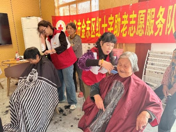 物資表心意,服務(wù)更暖心?;顒?dòng)現(xiàn)場(chǎng)專(zhuān)門(mén)設(shè)置了公益理發(fā)、健康義診、推拿服務(wù)等志愿項(xiàng)目,由醫(yī)生和志愿者們?yōu)槔先颂峁┵N心服務(wù),現(xiàn)場(chǎng)氣氛溫馨而有序。87歲的章秋玉老人家在推拿醫(yī)生按完肩頸后,紅了眼眶:“年年都想著我們,真是和家里人一樣親。”?